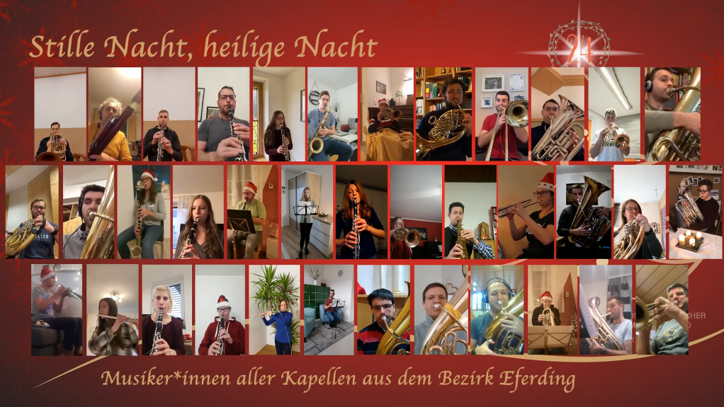 Im letzten Türchen des musikalischen Adventkalenders ist erwartungsgemäß „Stille Nacht“ versteckt. Zahlreiche Musikerinnen und Musiker aller Musikvereine aus dem Bezirk spielten die Stimmen ein und machten ein „Gesamtspiel“ draus.