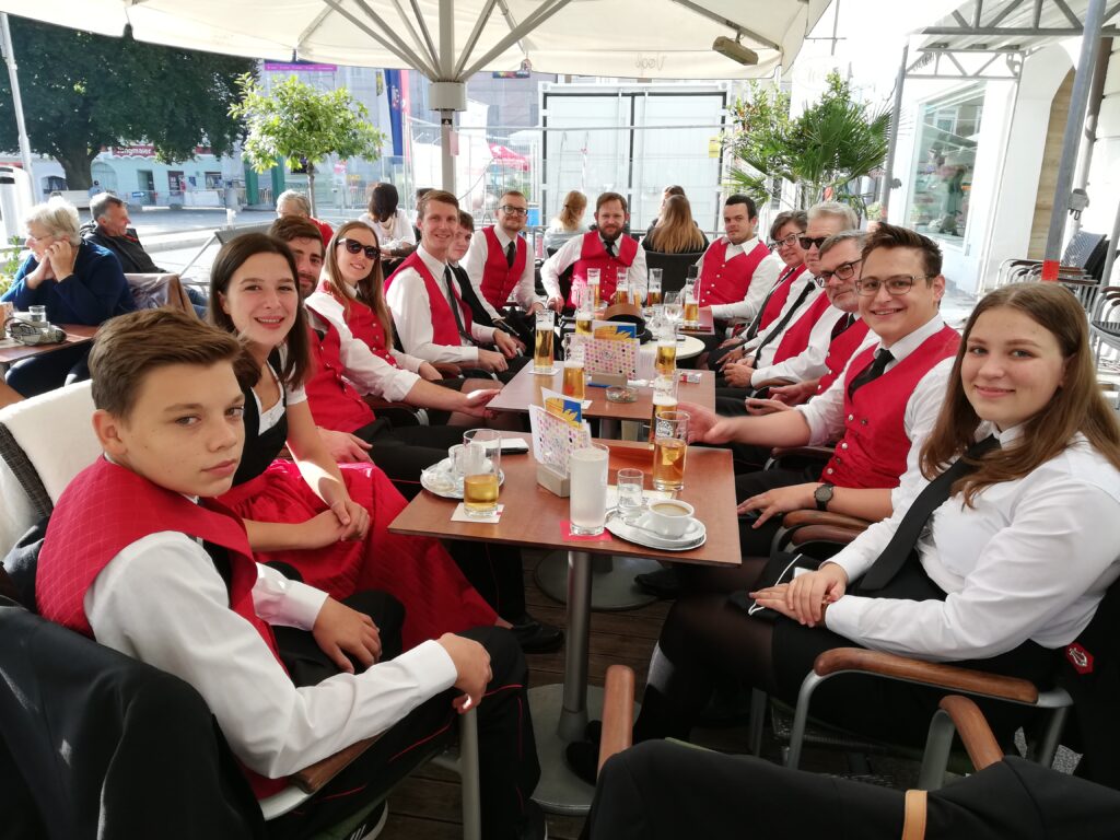 Die Nachbesprechung der ersten Ausrückung fand im Gastgarten der Konditorei Vogl statt.