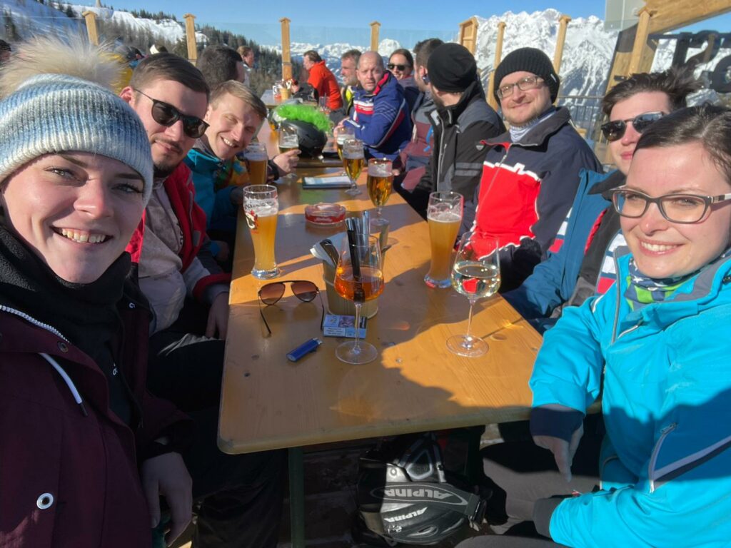 Nachdem man ausreichend Pistenkilometer gesammelt, den Einkehrschwung geübt und diverse Sturzrunden beglichen hatte, schnallte man die Schi ab und trat nach einem Abschlussgetränk gemeinsam die Heimreise per Bus an.