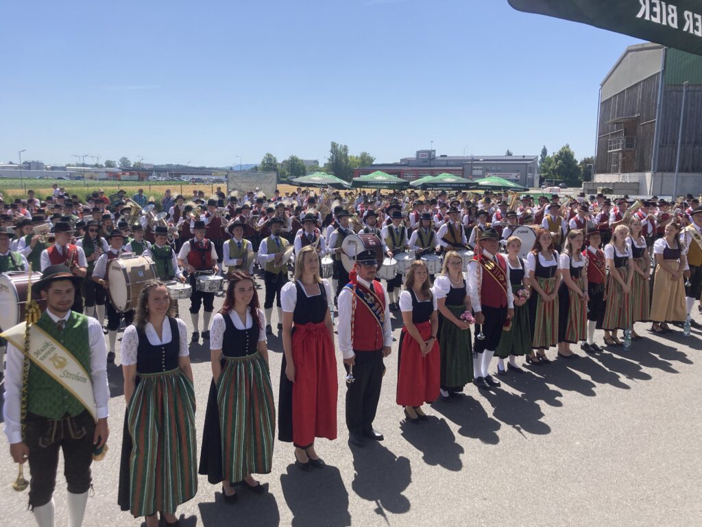 Am Sonntag fand dann endlich die erste Marschwertung nach drei Jahren Pause statt und sieben der neun Musikvereine stellten sich der kritischen Begutachtung durch die Herren Bewerter. Alle Kapellen traten in Wertungsstufe D an und daher gab es diesmal keine Show zu bewundern. Das tat der Freude des Publikums aber keinen Abbruch. Die Schwenkungen waren präzise ausgearbeitet, die Großen Wenden sorgfältig einstudiert und die Musiker:innen hochkonzentriert.