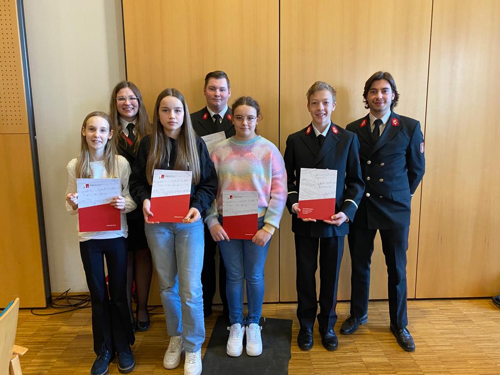 Es wurden insgesamt 55 Abzeichen im Bezirk verliehen. Wir sind sehr stolz, dass 7 Jungmusiker:innen unseres Vereins durch ihre tollen Leistungen geehrt wurden: