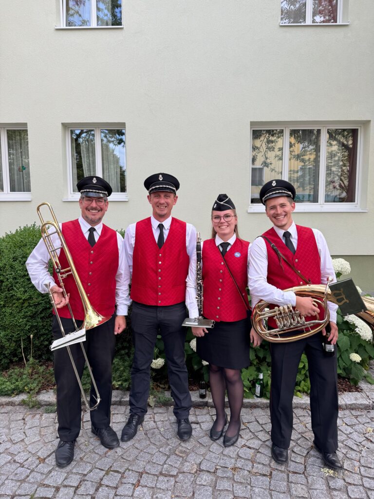 Beim MV Eferding waren gleich drei Musikanten das erste Mal offiziell bei einer Ausrückung dabei: Alexandra Zehetmair (Klarinette), Stefan Königseder (Tenorhorn) und Emanuel Kreuzer (Schlagwerk) hatten sichtlich Spaß beim Marschieren, Musizieren und Mitfeiern im Festzelt. Zusätzlich war Helmut Rittenschober, normalerweise Klarinettist und/oder Stabführer, das erste Mal mit seiner neuen Liebe, der Posaune, mit von der Partie. Die Feuertaufe haben alle vier mit Bravour bestanden.