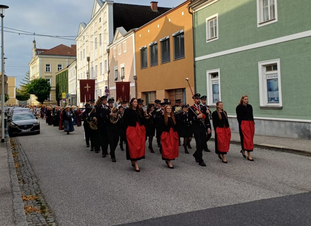 Der Musikverein durfte auch heuer wieder den Festzug im Rahmen des Erntedankfestes anführen und begleitete somit die Kirchengeher samt Erntekrone zur Stadtpfarrkirche.