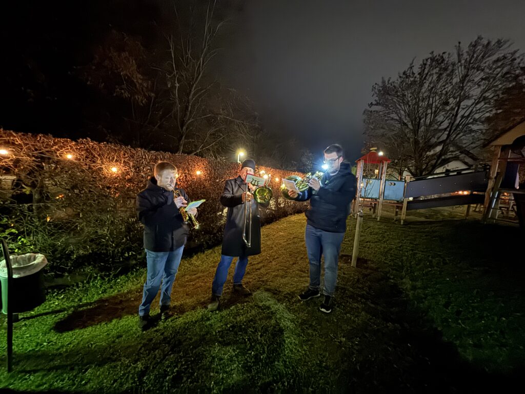 Es herrschte eine stimmungsvolle Atmosphäre, passend zur Einstimmung auf die besinnliche Jahreszeit. Beim Kindergarten wurden die Gäste von uns noch mit zwei Stücken unterhalten. Im Anschluss wurden wir mit Getränken und Essen versorgt.