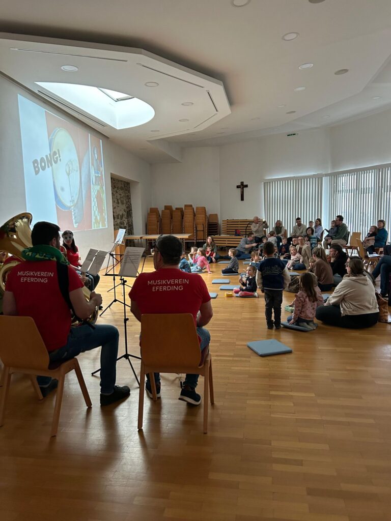 Der MVE durfte die Geschichte musikalisch ausschmücken und umrahmen und der kleine Vogel freute sich, am Ende mit den anderen musizieren zu dürfen. Auch die kleinen Kino-Gäste hatten im Anschluss die Möglichkeit, die Instrumente selbst auszuprobieren und ihr musikalisches Talent zu entdecken.